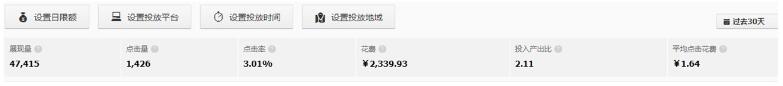 圖1和圖2分別是一款寶貝的上個月與近30天的直通車單個計劃的投放數據,可以看到,近30天的直通車單個計劃的投放數據遠沒有上個月的轉化效果好。