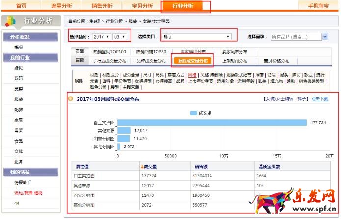 它還有一個特點就是會精細到屬性,什么材質賣的好,什么尺碼賣的好等等只要你想知道的就沒有生e經看不到的數據,當然這里主要說是寶貝的屬性數據哈!這樣在你選款式的時候可以通過這些熱銷屬性來參考,你就會恍然大悟的。
