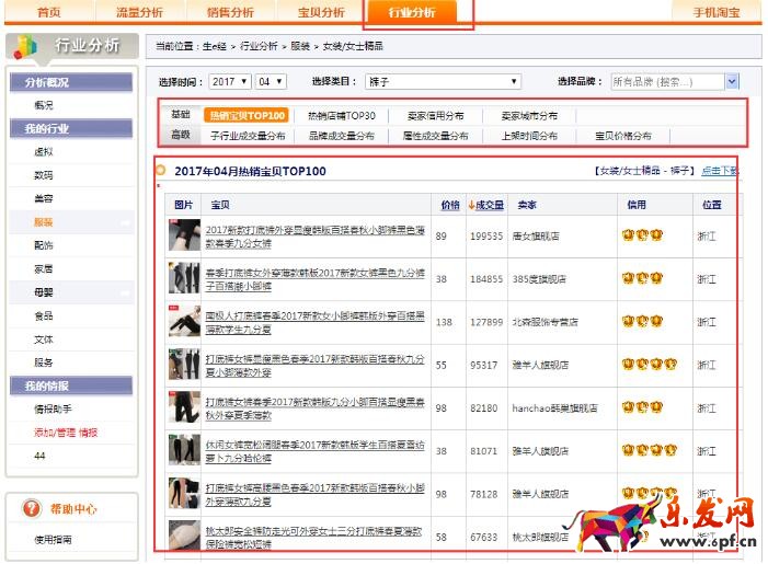 如果你們覺的淘寶排行選款不好用也不怎么準確,那么我推薦你們用生e經來選款。這里面有很多詳細的數據供你參考。不過這個是需要你去服務市場去訂購的哈。這個相對于淘寶排行要詳細多了,如果你不想自己總結熱款特性,生e經都幫你安排好了,你可以看到你行業里面的前100名的寶貝,你可以去看下他們有什么特點,款式是什么樣的,還可以看下他們的主圖詳情頁有什么特點,這些都是值得你考察的,新手很多不懂的地方可以學習大賣比較好的地方,你會發現你的店鋪存在很多問題的,就怕那些不學習的新賣家,那就尷尬了。