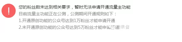 (8)流量主功能。這個(gè)功能目前是公測(cè),也對(duì)原創(chuàng)號(hào)進(jìn)行了傾斜,開通原創(chuàng)功能的粉絲達(dá)到1萬就可以開通了,而未達(dá)到的則需要5萬。5o%ENS-K2}