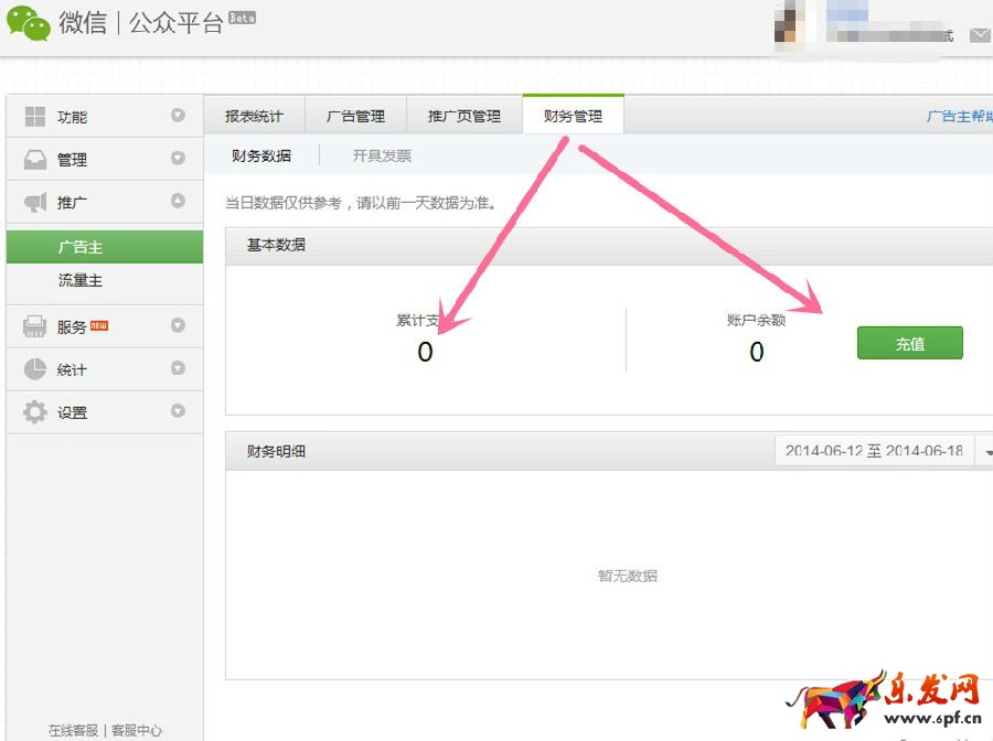 接下來,讓我們再看看廣告主。共有報表統(tǒng)計(jì)、廣告管理、推廣頁管理、財(cái)務(wù)管理幾個選項(xiàng)。