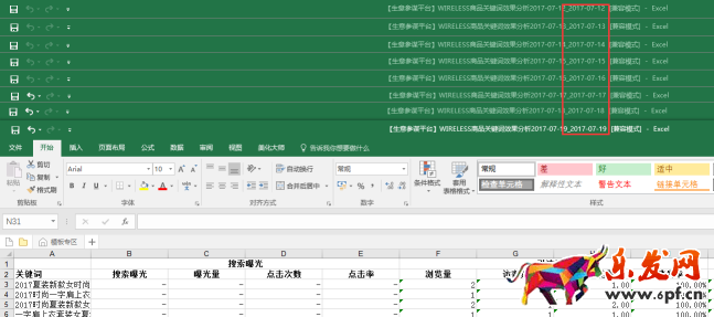 下載完7天的數(shù)據(jù),然后新建一個(gè)表格。把每天的關(guān)鍵詞跟的數(shù)據(jù)量復(fù)制到一個(gè)表格里,如下圖: