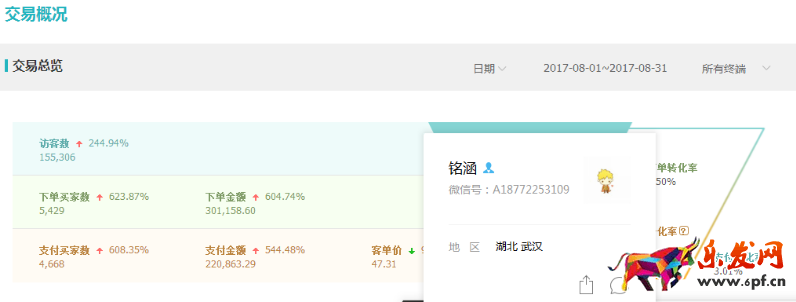 這是9月份店鋪成交金額,提升五倍之多;支付轉化率提升兩倍: