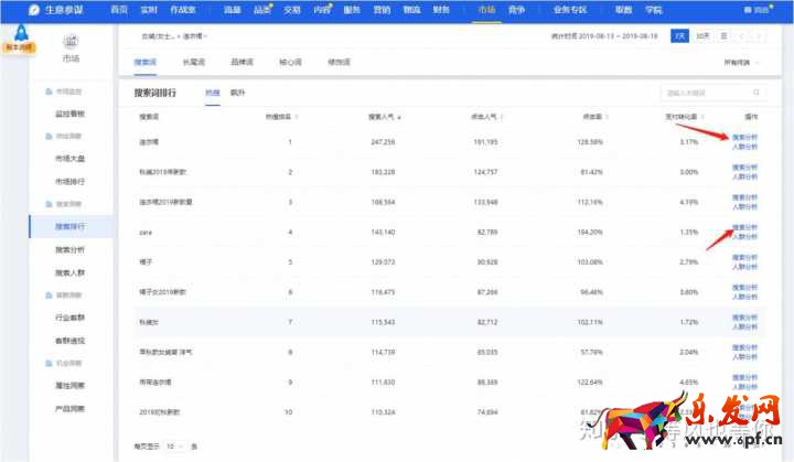 但是這100個(gè)詞無(wú)論是做標(biāo)題,還是做直通車都太少了,而且還得刪掉跟你沒(méi)關(guān)系的詞,那如何擴(kuò)展詞呢?在每一個(gè)詞的后面都有個(gè)“搜索分析”,點(diǎn)擊進(jìn)入,相當(dāng)于在“搜索分析”中搜索這個(gè)詞。