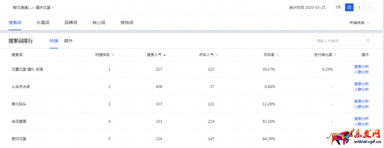 市場中的“搜索排行”是非常重要的,可以看到我們這個行業(yè)的各種關鍵詞,核心詞、長尾詞、品牌詞、搜索詞、修飾詞。有人會問我,這個有什么用?