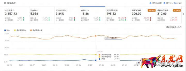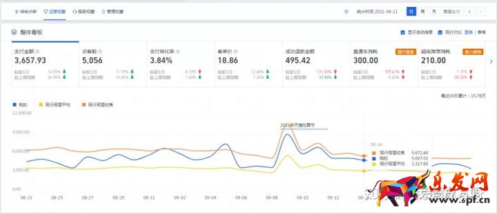 這個板塊可以看到店鋪整體的支付金額、訪客數、支付轉化率等數據與前一日以及與上周同期的對比,可以較快地發現問題所在并做出調整。也可以看自己店鋪的各項數據與同行的對比,幫助我們分析自己店鋪與同行之間的差距,找到優化方向。