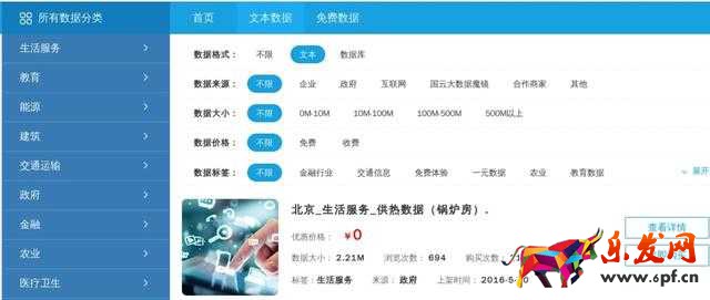 主要包含:生活服務、教育、能源、建筑、交通運輸、政府、金融、農業、醫療、衛生等行業的數據,大部分免費,有些需要付費