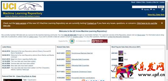 UCI:http://archive.ics.uci.edu/ml/index.php該網站目前維護了436個經典的機器學習、數據挖掘數據集,包含分類、聚類、回歸等問題下的多個數據集。