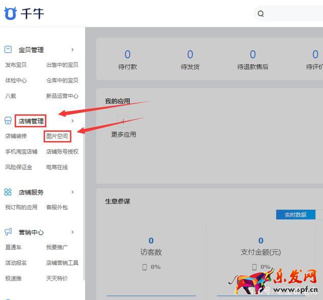 2.在【千牛賣家中心】首頁左側欄找到【店鋪管理】--【圖片空間】