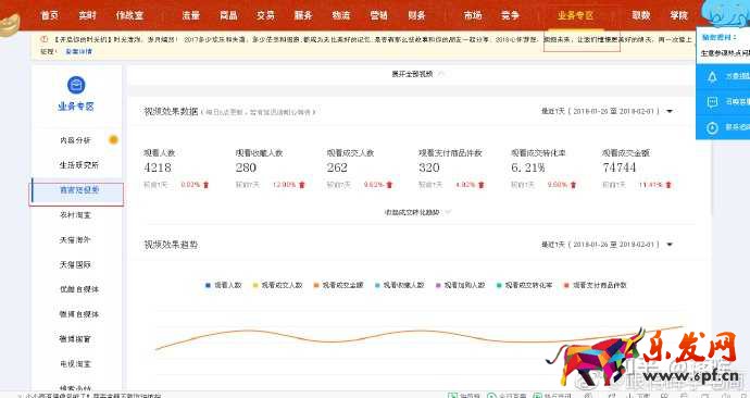 比如生意參謀的業(yè)務(wù)專區(qū)模塊,商家可以通過(guò)這里看到自己視頻效果數(shù)據(jù)反饋,可以觀看成交轉(zhuǎn)化率,觀看成交金額,還不知道視頻帶來(lái)的效果的賣家,趕緊去研究研究。