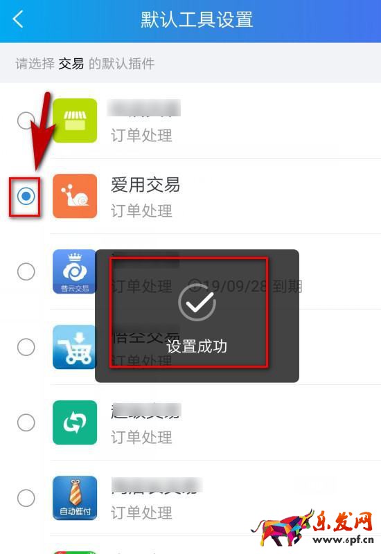 3、接著,在默認工具設置的界面點選愛用交易的插件,就會提示設置成功。