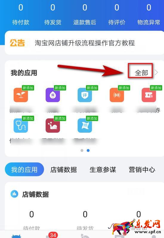 1、首先,在手機上打開千牛的APP軟件,在打開的主界面點擊我的應用右側的全部。