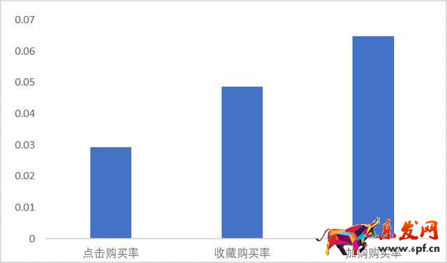 對商品購買路徑進行分析,點擊購買率=商品僅點擊后購買量/商品僅點擊量,收藏購買率與加購購買率同上??梢钥闯?,加購購買率明顯高于收藏購買率與點擊購買率。