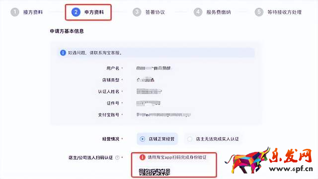 注意:看上面的步驟環節“申方資料”步驟是申請方(原店主)認證;“填寫資料”步驟是接收方(新店主)認證(看下面第八步)。