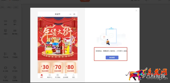 設置好相關的內容之后,只需要點擊右上角的預覽保存,將前面注冊的小程序授權給平臺,即可發布。