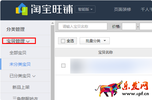 (3)點(diǎn)擊寶貝分類管理。