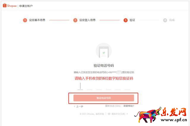 5、主賬戶手機(jī)短信驗(yàn)證。輸入驗(yàn)證碼之后,點(diǎn)擊“驗(yàn)證電話號(hào)碼”按鈕即可。如(圖6)所示。