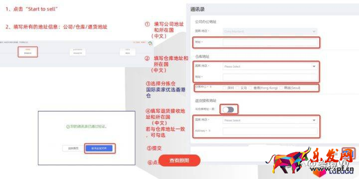 ④填寫退貨接收地 址和所在國 (中文) 若與倉庫地址一致,可勾選