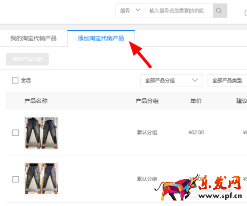 3 在一件代發頁面,點擊【添加淘寶代銷產品】。