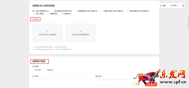 如圖所示,需要上傳營業執照信息、填寫法人和商戶名稱等各項信息,